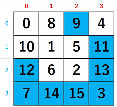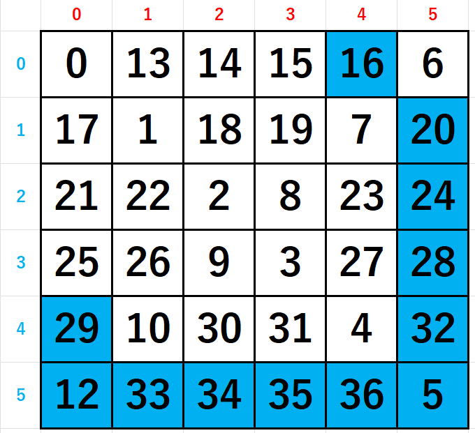 if (s == 0)a[y[s]][x[s]] = i + 1;