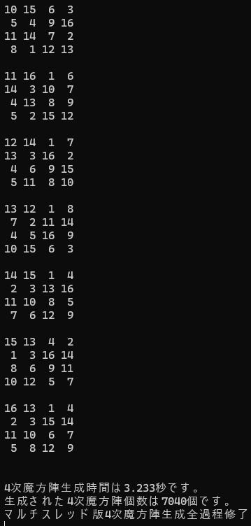 マルチスレッド版4次魔方陣生成全過程修了
