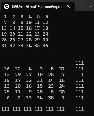 void 魔方陣();//横と縦の2方向を持つ2次元for文体験