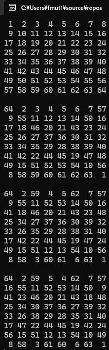 //a[n - 1 - i][(3 + i) % (n / 2)]のデータをa[n - 1 - i][n - 1 - ((3 + i) % (n / 2))]のデータで上書き