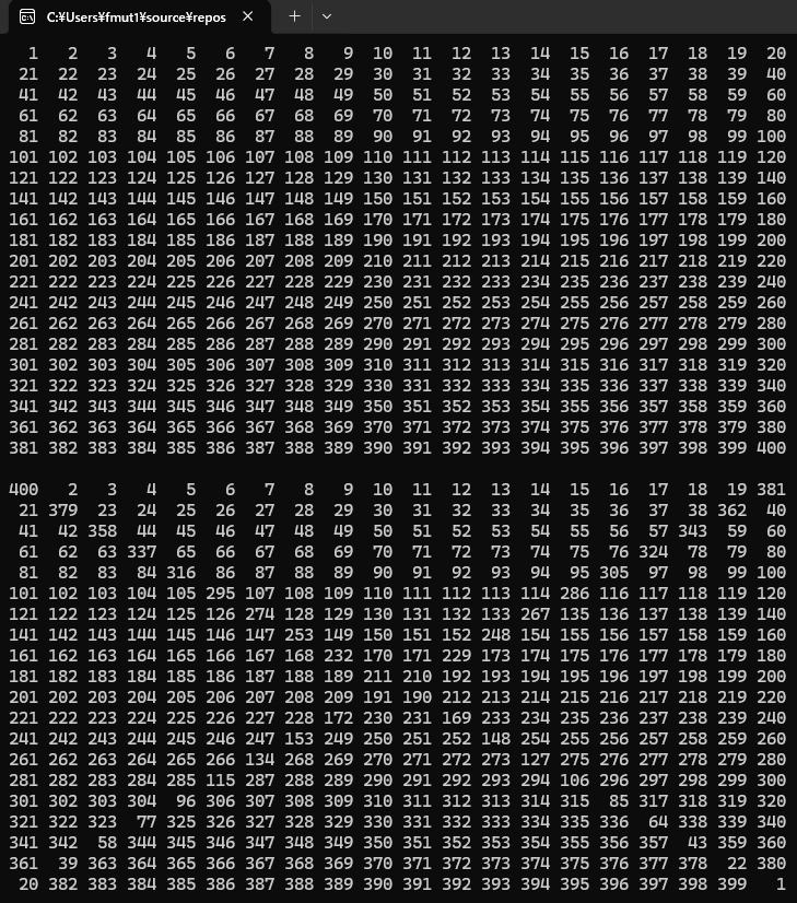尚、n > 28 なるとコンソール画面を最大化しないと成形が崩れます。