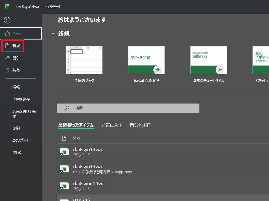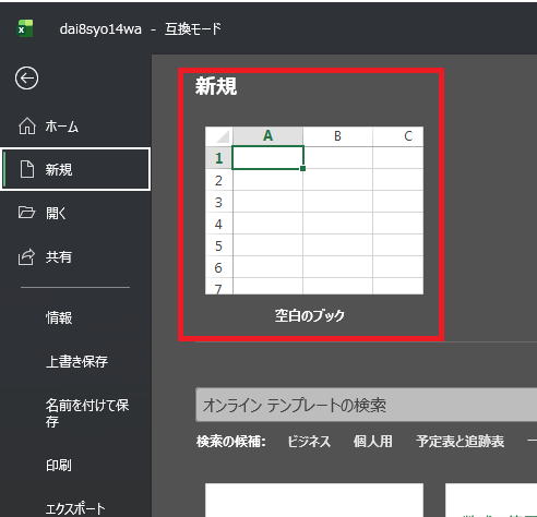 当然空白の新規のエクセルができます。