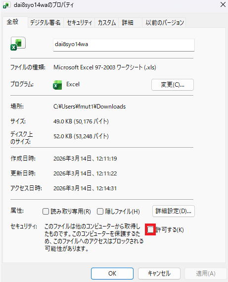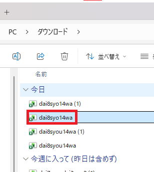ダウンロードに戻りdai8syo14waをダブルクリックします。