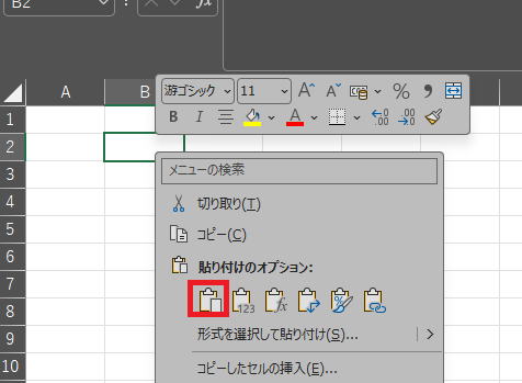 に戻り、B2で右クリック