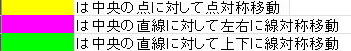 の指示の下に黄色は中心の点に対して点対称移動、