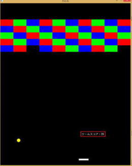 Zキーを押すとゲームが再開するブロック崩しゲームです。