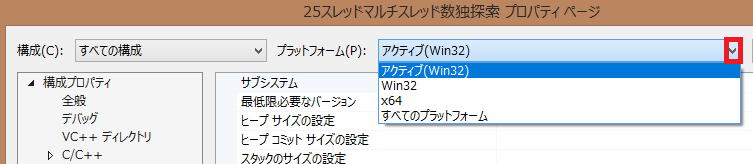 赤い囲いをクリックしてアクティブ(Win32)を選んでアクティブ(Win32)になるようにします。