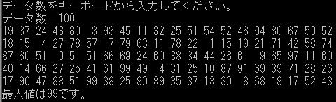 それでは、皆さんランダムデータを発生させて、その中から最大値を探し出すプログラムを考えてください。