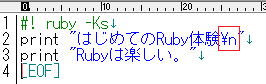 なんと、putsの方は改行(行を変えること)されたのに対して、