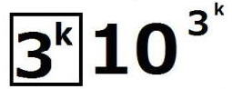 (1)の命題を(*)とし、(*)が成り立つことを数学的帰納法で示す。 ⅰ m=0のとき、 =1 =3したがって、 (*)は成り立つ。 ⅱ m=k(≧0)とき(*)が成り立つと仮定すると、 は では割り切れないから、3で割り切れない適当な整数pが存在して、 =pm=k+1の場合を考える。 =![]() = ![]() = ![]() = ![]() ここで、 の各位の数字の和は3なので、 は3の倍数であるが、9の倍数ではない。よって、3で割り切れない整数qによって =3qとおける。このとき =3q・p![]() p,qは3の倍数でないので、適当な整数a,bによって、 p=3a±1,q=3b±1 と表せる。4つの組み合わせ pq=3(3ab+a+b)+1,3(3ab-a+b)-1,3(3ab+a-b)-1,3(3ab-a-b)+1 はいずれも3の倍数ではない。 したがって、 は で割り切れるが、 では割り切れないから、(*)はm=k+1の場合も成り立つ。 以上ⅰⅱより、0以上のすべての整数について(*)が成り立つことが証明された。 |