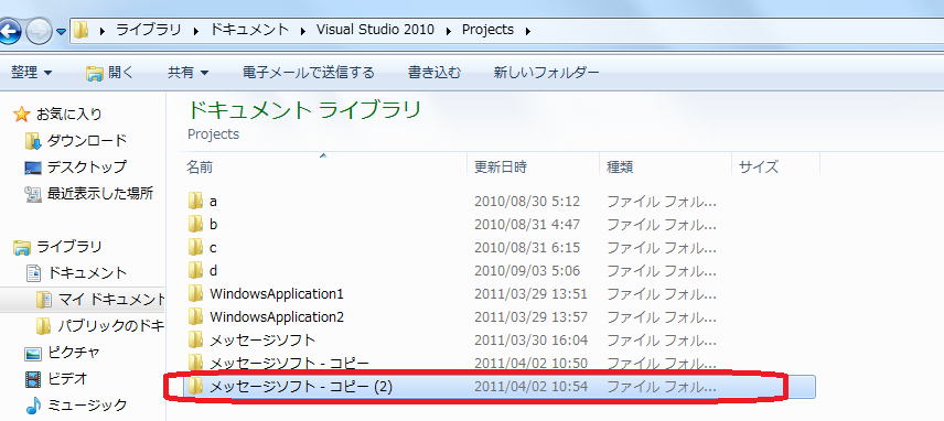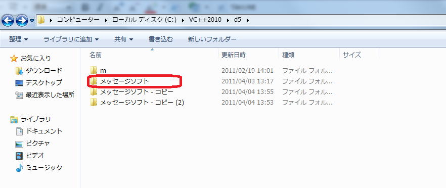 そして、バックアップフォルダであるメッセージソフト-コピーをダブルクリック!