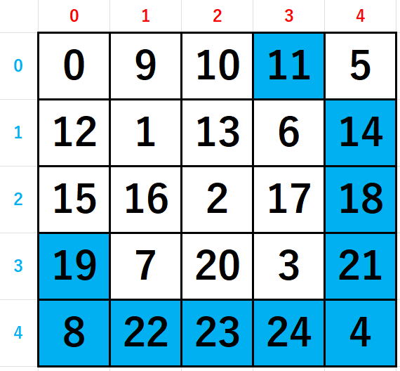 if (s == 0)a[y[s]][x[s]] = i + 1;