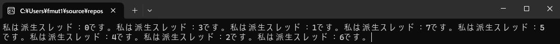 cout << "私は派生スレッド:" << a << "です。";