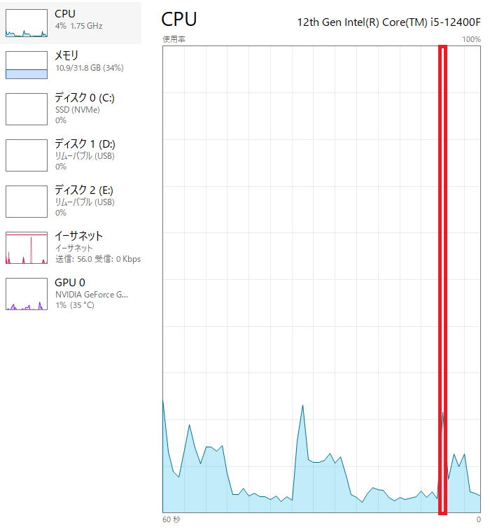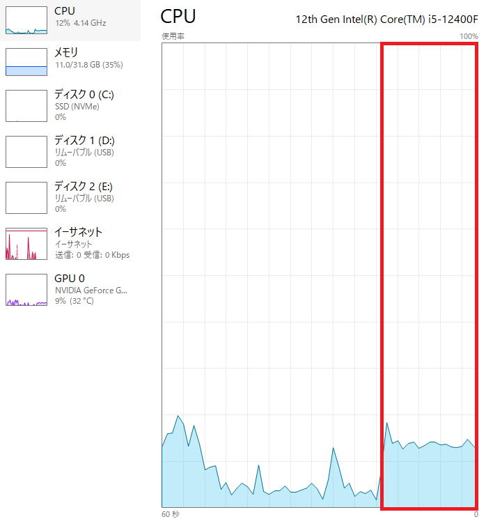 参考までにそれぞれの版のCPU使用率も載せておきます。