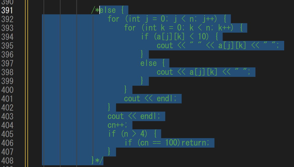 cout << endl << "生成された" << n << "次魔方陣総数は" << cn << "個です。" << endl;//←2026年3月19日訂正