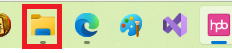 タスクバーの赤枠をクリックしてエクスプローラーを起動します。
