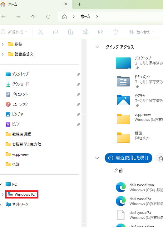 ですからWindows(C;)をクリックします。