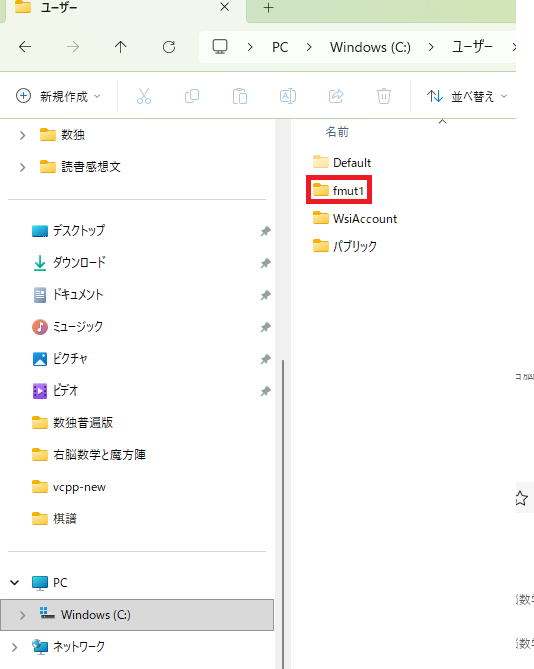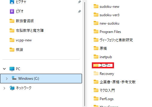 そして、ユーザー(これはスペルで書いてある場合もあります)に目的のフォルダが入っています。