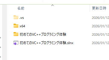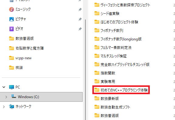 今回は『初めてのVC++プログラミング体験』でしたから、ついに該当フォルダが発見されました。
