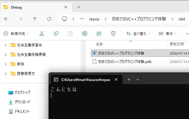 これで『初めてのVC++プログラミング体験』が実行ファイルであることが証明されました。