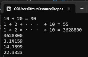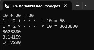 cout << "1 + 2 + ・・・ + 10 = " << 合計計算社員() <<
