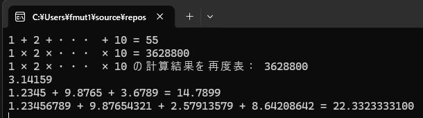 単精度型実数の合計変数 = 単精度型実数の合計変数 + 1.2345;//0に1.2345を加える