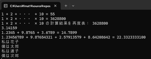 cout << "1 + 2 + ・・・ + 10 = " << 合計計算社員() <<