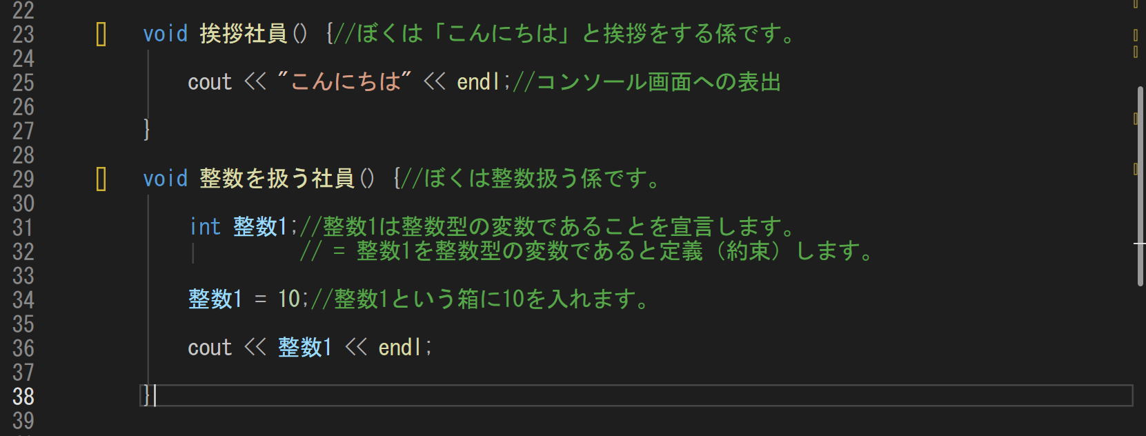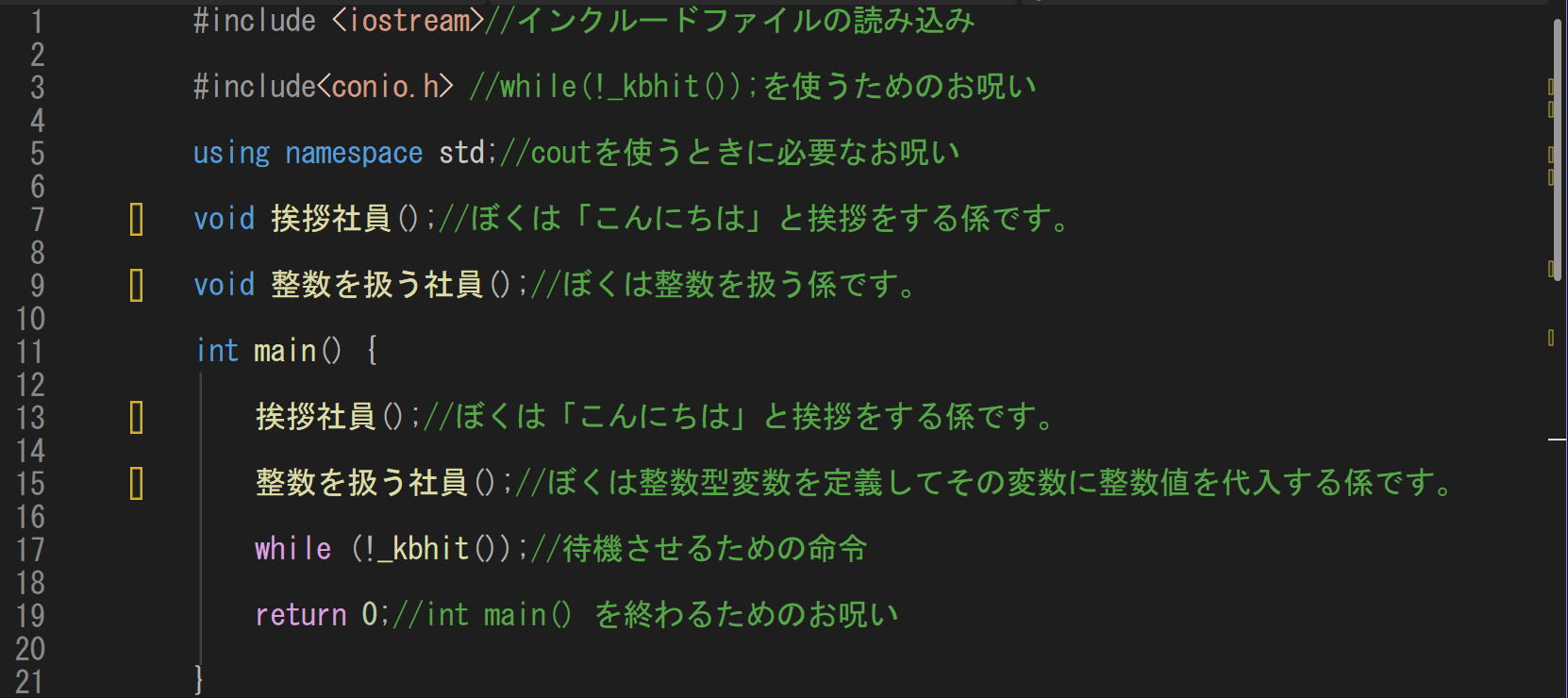 void 挨拶社員();//ぼくは「こんにちは」と挨拶をする係です。