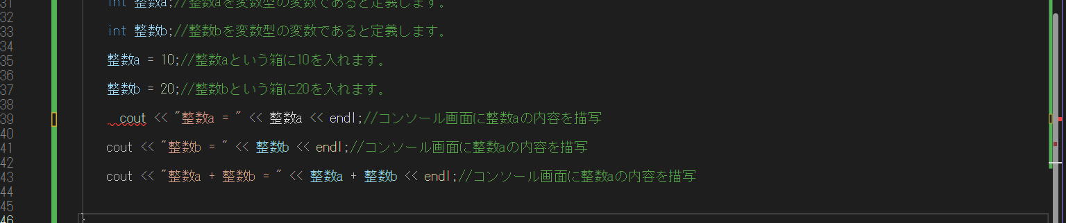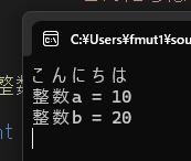 cout << "整数b = " << 整数b << endl;//コンソール画面に整数bの内容を表示