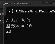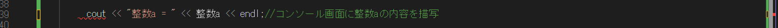 cout << "整数a = " << 整数a << endl;//コンソール画面に整数aの内容を表示