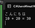 = " << 整数a + 整数b << endl;//10 + 20 = 30と表示