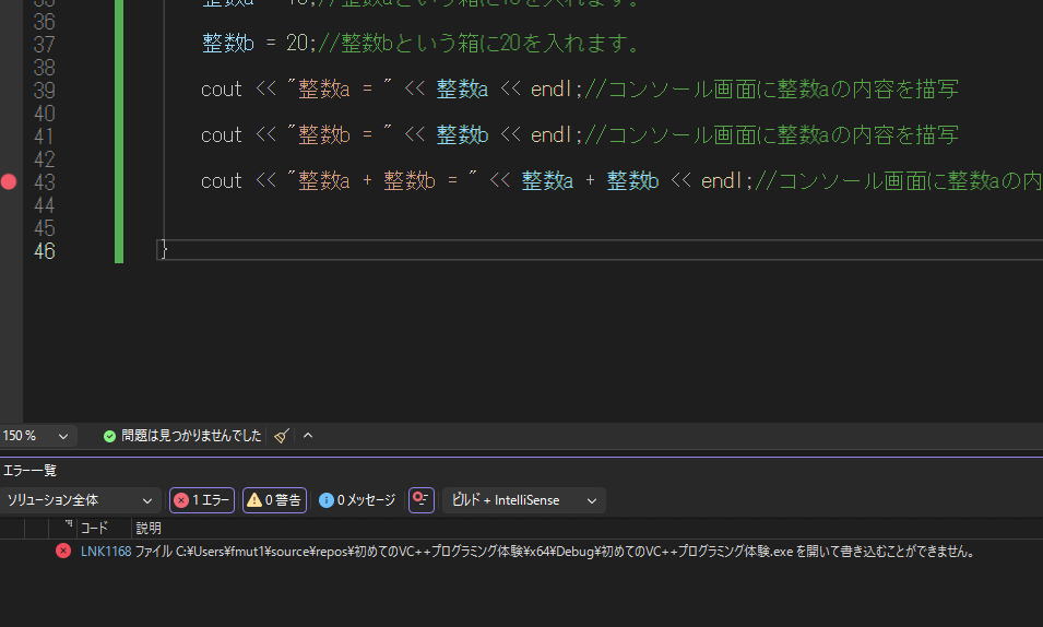 VC++ 2026に戻ってもう一度F5を押してビルドエラーが解消されていることを確認してください。