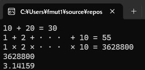 cout << "1 + 2 + ・・・ + 10 = " << 合計計算社員() <<