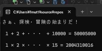 cout << "さぁ、探検・冒険の始まりだ!" << endl << endl;