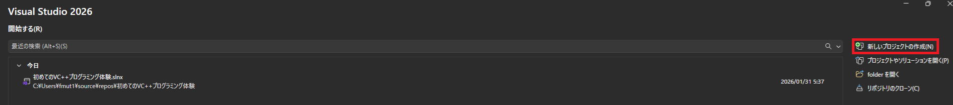 まず、Visual Studio 2026を起動してください。