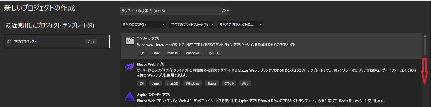 そして、赤い矢印の通り下にスクロールします。