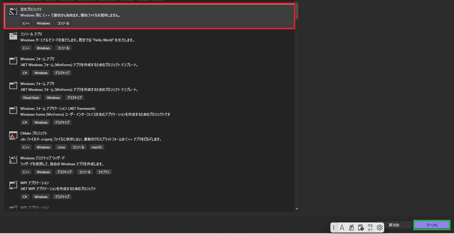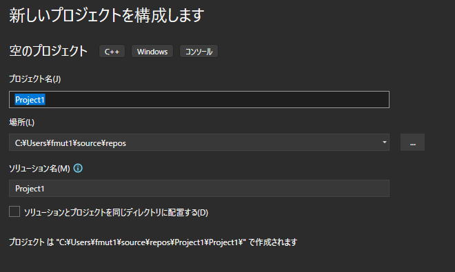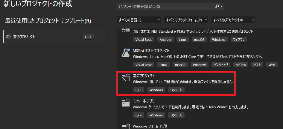 空のプロジェクトを選び、