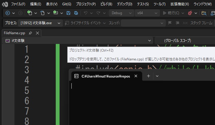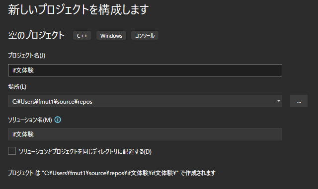 プロジェクト名をif文体験(もちろん名前ですから禁則さえ侵さなければ何でもよいですが、