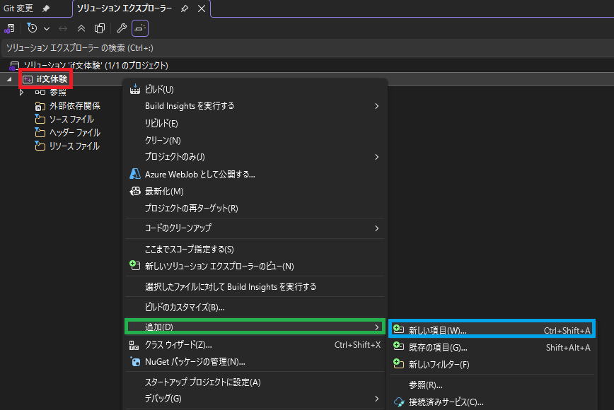 if体験で右クリック→追加→新しい項目
