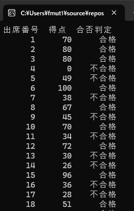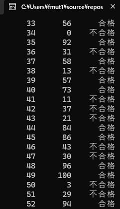 void ランダムデータの生成と判定();//0以上100以下の整数データを生成して合否判定をする。