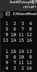 int a[4][4];//4行4列の行列を表すことのできる2次元配列の宣言