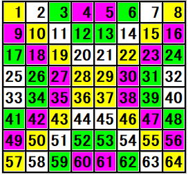 各行・各列・各対角線合計を計算すれば8以上の4の倍数次魔方陣ができていることを証明することができます。