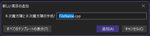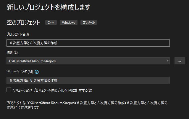 プロジェクト名を『6次魔方陣と8次魔方陣の作成』