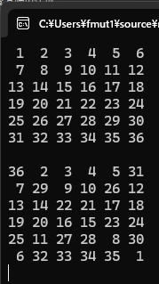 const int n = 6;//これからは具体的な数字を使わずにnとする。左の6を8などに変更すれば8次魔方陣に対応する