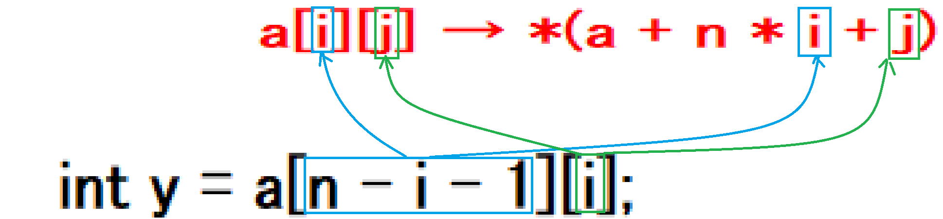 int y = *(a + n * (n - i - 1) + n - i - 1);