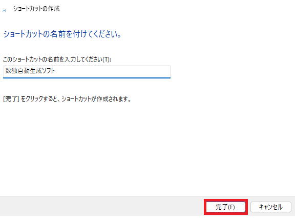 数独自動生成ソフトなどと入力してから完了をクリックしてください。