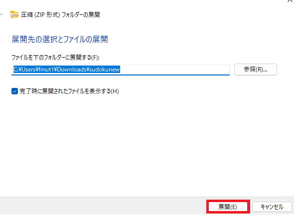 C:\Users\fmut1\Downloads\sudokunewをC:\sudokunewに変更して