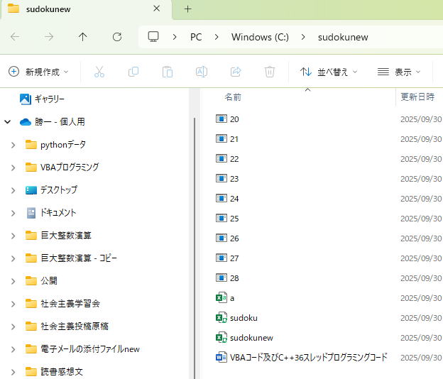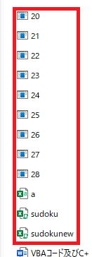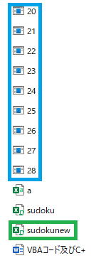 20からVBAコード及びC++36スレッドプログラミングコードまでのファイルが展開されます。20からsudokunewまでのa以外のファイル