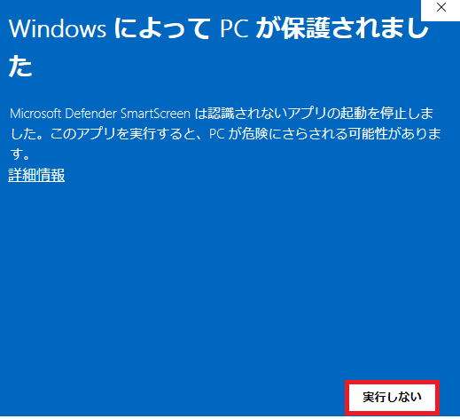 という画面が立ち上がりますが、何もしないで実行しないをクリックします。