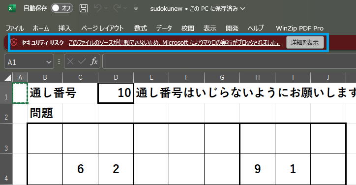 『編集を有効にする』が出て来ることもありますが、その場合には編集を有効にしてからエクセルを閉じてください。